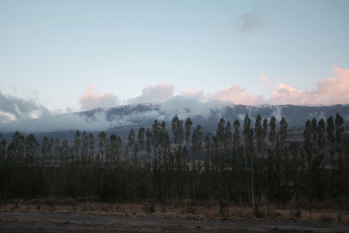 산과 구름은 멋지지만 바닥은 염소 똥밭이었다.