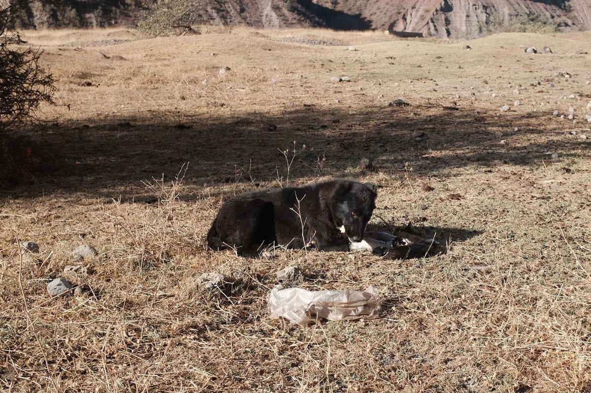 텐트를 접고 있었는데 양치기 개 한 마리가 내 텐트로 뛰어들어가더니 내 빵을 훔쳤다.